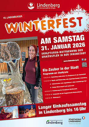 Am Samstag, 31. Januar 2026 findet in der Lindenberger Innenstadt bereits zum fünfzehnten Mal das beliebte Winterfest statt. Bei der anstehenden Neuauflage der beliebten Veranstaltung wird erstmals auf dem zentral gelegenen Stadtplatz gefeiert. Unter dem Motto „Eis-Zauber in der Stadt“ sind alle Kunstfreunde und Schneehasen, ob Groß oder Klein, herzlich eingeladen, die beeindruckenden sowie kristallklaren Skulpturen aus Eis zu bestaunen.